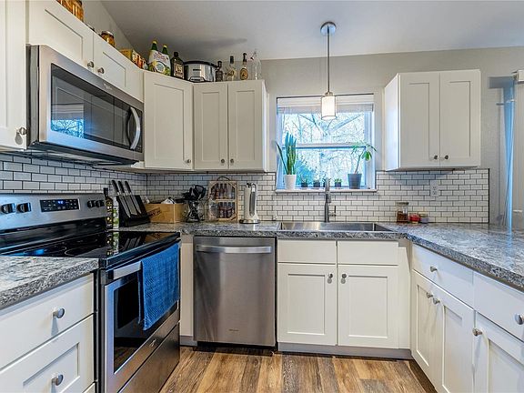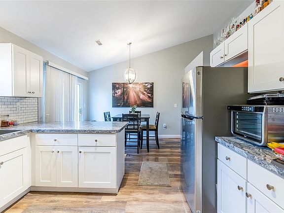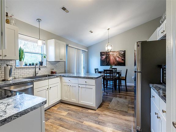 Completely updated villa in a quiet cul-de-sac near shopping and entertainment. Stainless appliances, tile backsplash, walk-out sliding door to back patio, private backyard backing woods, new roof in 2020, and new HVAC in 2019. All appliances stay including washer/dryer.