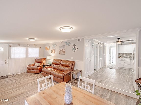 Introducing our newest gem in Laguna Beach! This charming cottage boasts delightful beachy decor and comes fully furnished for your convenience—just pack your swimsuit! Perfect for rentals, this home features an updated kitchen, bathrooms, flooring, a bunk room, gas Rinnai water heater and Beachy decor. Outside, you'll find a fantastic deck, fenced backyard, shed, outdoor shower with hot and cold water, plus additional parking for a golf cart, small boat, or beach toys. Just a short stroll from the beautiful Laguna Beach, renowned for its laid-back lifestyle and vibrant community. Enjoy local amenities like a grocery store, liquor store, donut/ice cream hangout, UPS, barber shop, and gift shop—all just steps away from the reserved beach area. Conveniently located minutes from Pier Park, Carillon Beach, and the 30A corridor. Don't miss out on experiencing this special home and the cool vibes of Laguna Beach!