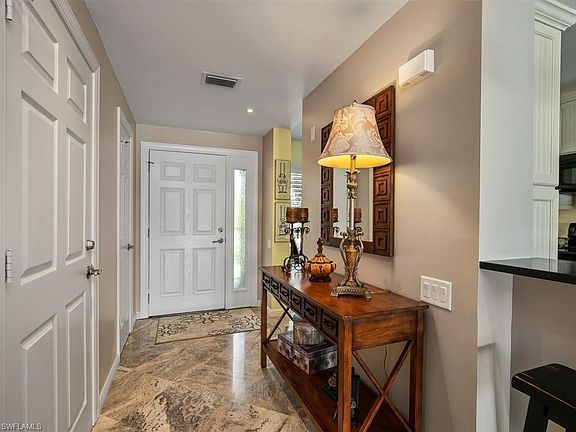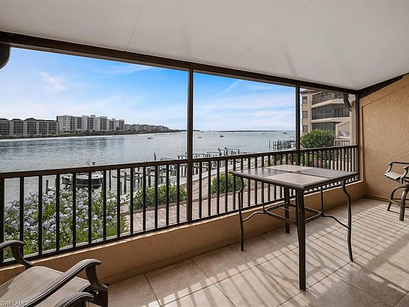Majestic views of Big Marco Pass and awesome sunsets into the Gulf of Mexico from this wonderfully updated, luxury two bedroom, two bath plus powder room two-story townhouse offered Turnkey/Furnished featuring a comfortable 1750 square feet under air, travertine flooring, custom cabinetry, quartz kitchen counter tops, a generous master suite with sweeping water views, a beautifully renovated master bath with dual vanity and large walk-in shower, a spacious guest bedroom with en suite bath, plantation shutters on all windows and protected by hurricane rated impact resistant windows and doors! One garage parking spot and an ample storage unit conveys with the home. A new walkway to the unit from the elevators has been approved by the association and is scheduled for installation before Spring 2020! This fabulous property is located just steps to the community pool, hot tub, tennis courts and available boat docks. La Peninsula in Isles of Capri is a gated community just minutes to Marco Island beaches and a short 20 minute ride to downtown Naples. Pets are permitted for owners with association approval!