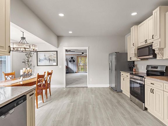 VR $375,000-$400,000. This fully renovated home is a must-see, blending modern luxury with comfort. This stunning property features two fireplaces, one in the living room and one in the family room, and a gourmet kitchen with custom quiet-close cabinets and granite countertops. The main-floor primary suite boasts a spacious walk-in closet and a gorgeous ensuite bathroom. Main floor laundry can double as office or craft room. Bedrooms are all large, all with walk-in closets. Sitting on a double lot with a massive 3+car garage. You'll also enjoy the beautiful Buffalo Lake wateviews, plus walking to the library, restaurants, and shops. All work in the home has been professionally done. VA, FHA and all loans welcome! LVP flooring to be replaced & floors leveled as able by McCartney Flooring