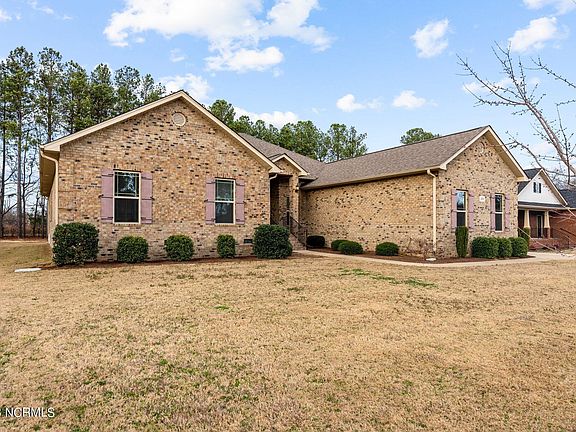 Beautiful all brick home in one of Benson's most desirable neighborhoods. Move-in ready. 4 Bedrooms 2 1/2 baths with 3 car side entry garage. Large eat in kitchen with island, built in desk and plenty of counter & cabinet space. Separate laundry room and large pantry. Ten foot ceilings in spacious living room, separate dining room with tray ceilings & study-office. Large primary suite with tray ceilings, 2 walk in closets, double vanities, garden tub & a separate shower.