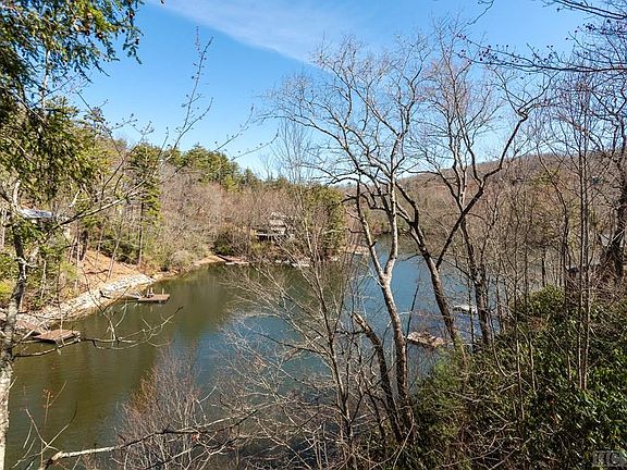 Nestled amidst the tranquil beauty of Norton Creek and Norton Falls, this architectural gem designed by the acclaimed Dan Duckham stands as a testament to harmonious living with nature. As you approach the cedar exterior, you're greeted by the sounds of Lake Glenville's largest waterfall, Norton Falls, providing a serene backdrop to this lakeside retreat with 230 feet of lake frontage. Step onto the partially covered deck, where an inviting wood-burning stone fireplace sets the scene for cozy gatherings. Here, you can relish the sights and sounds of nature while sipping your morning java or evening spirit. Interior ceilings adorned with cedar exude warmth and character, complemented by rich tones of walnut hardwood floors and Douglas Fir beams sourced from Oregon. Every corner of this custom-designed masterpiece showcases the finest craftsmanship and attention to detail. The heart of the home lies in the chef's kitchen, where culinary enthusiasts will delight in creating gourmet meals while soaking in the breathtaking lake views. Upstairs, the primary suite is a sanctuary of luxury, boasting two full baths, walk-in closets, and a soaking tub with a cascading waterfall faucet. On the lower level, you will find a guest suite, laundry, half-bath, and a dining area. Outside, a flat garden space provides a blank canvas for your imagination to roam. Constructed with cutting-edge SIPS panels, adorned with artisanal rockwork, and featuring granite countertops and artisan hardware throughout, this private oasis exudes luxury and serenity. Adjacent to the main house, a charming treehouse, featured in a PBS special, is equipped with electricity and plumbing, offering a whimsical retreat amidst the canopy of trees. This rare find offers a secluded escape just moments away from the vibrant town of Cashiers. In every detail, this lakefront retreat stands as a testament to the seamless integration of architecture and nature, offering a truly unparalleled living experience.