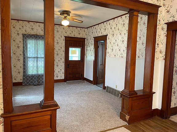 Charming 2 bd 1 ba, brick home, fresh paint in some rooms, new carpet in both bedrooms and living room. Original wood work and floors under carpet. Oversized 2 car detached garage on flat corner lot. Laundry room on main floor. Needs a little love and updating but ready for new family to move in. 45 minutes from Metro. (AMA per Assessor)