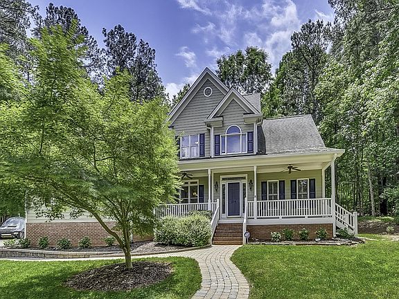MINS FROM HISTORIC WAKE FOREST DISTRICT - This charming home nestled on a hill offers a serene escape with its breathtaking backyard equipped with a pond. Upon entering, you'll immediately notice the thoughtful design and attention to detail. The main level boasts a desirable downstairs master suite, providing convenience and privacy, with ample natural light and a well-appointed en-suite bathroom.The heart of the home lies in the soaring ceilings of the oversized living area, where you'll find a cozy fireplace, large windows that frame the enchanting views of the backyard oasis. The open floor plan seamlessly connects the living area to the well-equipped kitchen, creating an ideal space for entertaining guests or enjoying quality time with family. Upstairs, you'll discover three additional generously sized bedrooms that provide flexibility and comfort one bonus room to make this home complete. These rooms can serve as bedrooms, guest quarters, or even a home office, depending on your needs. The possibilities are truly endless. Welcome Home!!