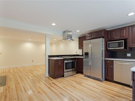 Great value for Ridgefield, CT! Updated 5BR/3.5BA Colonial flooded with natural light. Beautiful Eat-in Kitchen w/SS Appliances and fireplace opens to dramatic sun room and deck w/expansive view of lawn and private setting. Formal living and dining room. Family/media room w/fireplace and office area. Updated mechanicals and generator. Over $300K in improvements since 2005 purchase for $865,000. Lower level legal apartment features 5th Bedroom, New Chef's Kitchen (Cherry Cabinets, Quartz counters, Granite Backsplash, SS Sink) Washer/Dryer and Full Bath - Great In-law Setup or legal rental. Great space...great location...minutes to Main Street Ridgefield. Just awaiting you!