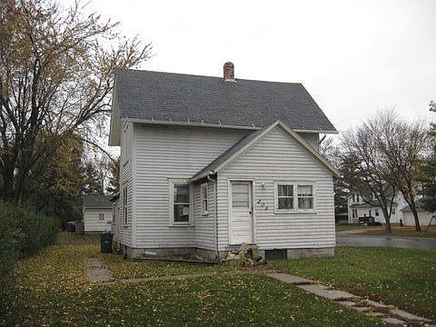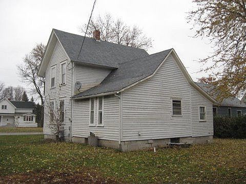 Exterior: White wood siding home with white trim. Home sits on a cinder block foundation, which is showing some signs of settling in the rear. The yard is nice and large - this home is on a corner lot. Gutters and downspouts in place. Roof looks to be in good condition, however, some evidence of slight leakage inside. Windows are vinyl replacement and wood framed. Nice concrete walkway on the front and side of the home. Half concrete, half gravel driveway towards the rear. Interior: Side entrance leads in to a nice enclosed side porch area, which then leads into the kitchen. Cabinets, countertop, and sink are intact here. Stove is still in place as well as the refrigerator. Floors are sticky tile and the walls have some cracks from settling. There is a ceiling fan present here. Living room carpet is grey and will need to be thoroughly cleaned or replaced. Nice wood trim around the doors and windows, which are vinyl framed. Nice enclosed front porch has painted green hardwood floors - windows are wood framed here. Bedroom #1 is downstairs and has sticky tile floors as well as the same good wood trim as the living area. Bathroom is adjacent to the kitchen. The tub, toilet, and sink are intact - the floor is linoleum floor and the mirror is of a nice size. Utility closet with washer and dryer hook ups is located behind the bathroom and is accessed through the kitchen. Upstairs has Bedroom #2, which is painted, blued with moons. Next to this room there is the master bedroom, which also has a very large storage space adjacent to it. Basement has a small amount of moisture and has a bathroom inside. Mechanicals: Water and furnace are present and both appear to function. Plumbing is galvanized and connected. Electrical looks to need some repair. The aluminum ductwork is in place and fully connected.