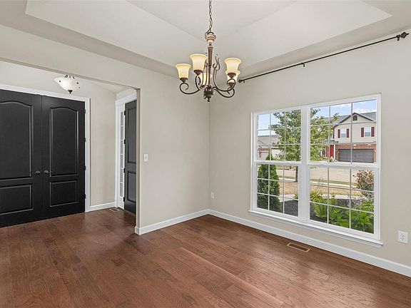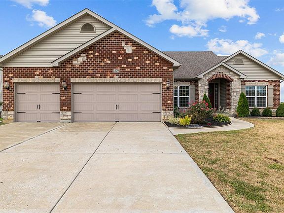 This stunning atrium ranch in Wentzville is your dream come true! Beautiful curb appeal welcomes you, with a brick front, stone accents, arched covered porch, landscaping and 3-car garage. The foyer opens to the showstopper main living space. With soaring vaulted ceilings, a two-sided gas fireplace w/floor-to-ceiling stone, gleaming engineered hardwood floors & lovely archways, the space is magnificent. A hearth room/breakfast area leads to the kitchen w/granite counters, tile backsplash, cabinets w/crown molding, and stylish lighting that is echoed throughout the home. The primary suite w/tray ceiling is conveniently connected to the laundry rm through the walk-in closet. You'll love the freestanding tub, dual-head tile-surround shower & double vanity w/granite top. Two more BR & full bath complete the main level. Walk out LL adds family rm, 4th BR, full bath & storage. Maintenance-free deck and covered patio look out to trees and farmland. Walk to community park & playground!