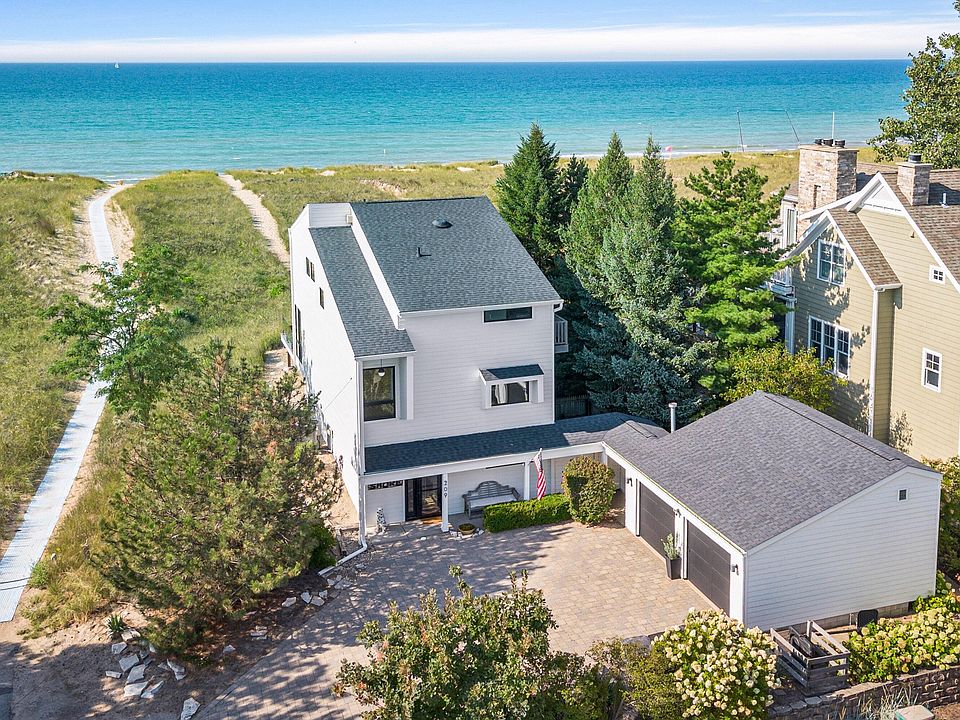 Welcome to your dream home in the exclusive Sheridan Beach neighborhood, where luxury meets modern contemporary design in this breathtaking beachfront residence. This stunning four-bedroom, four-and-a-half-bathroom home, complete with an additional bunk room, offers the perfect blend of elegance and comfort, providing an unparalleled living experience. From the moment you step inside, you'll be captivated by the abundance of natural light that floods the space through large windows, offering outstanding views from sunrise to sunset. The open main floor layout is designed with entertaining in mind, seamlessly connecting the updated kitchen, dining, and living areas. The kitchen is a chef's delight, featuring new appliances and sleek finishes that make meal preparation a joy. Multiple living areas provide ample space for relaxation and gathering with family and friends, while the luxurious primary suite offers a serene retreat with a spa-like bathroom that exudes sophistication and tranquility. Two additional en suite bedrooms provide comfort and privacy for guests, while the fantastic multi-level decking invites you to step outside and soak in the stunning views and coastal breezes. The direct walk path to one of the area's best beaches ensures you're always just moments away from the singing sands. Practicality is not overlooked, with a large two-car garage offering ample storage space and plenty of parking available for all your needs. This home's prime location places you within easy reach of local dining, entertainment, and the South Shore Line, all just 60 minutes from Chicago. This is more than just a home; it's a true lifestyle. Experience the best of beachfront living in Sheridan Beach. Don't wait, schedule your showing today. Welcome to 209 Louisiana Avenue!