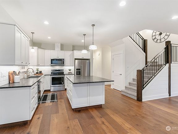 Beautiful 5 BR, home located on a quiet cul-de-sac with mature trees. Walking distance to parks and downtown shopping. 9’ ceilings on both floors. Main floor primary BR with ensuite BA and tiled double shower. Additional powder room on the main. Four BR’s, flex room with skylights, 1 ½ bathrooms and plenty of storage on the second floor. Large great room with white oak engineered hardwood floors, kitchen with brand new Kitchen Aid appliances, granite countertops, large island and ample pantry storage. Spacious laundry room with washer/dryer. Garage with 12’ door will accommodate RV or boat. Mini splits provide heat and AC on both floors. A large, covered patio will be great for entertaining. Easy ADU conversion in garage space.