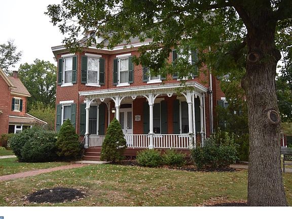 A step back in time in historic Rancocas! Built in 1877 and known locally as the Henry Leeds house this property still retains its original charm although updated for a modern lifestyle. Brick exterior and walkways, ginger bread on the porches, real wood shutters, ten foot first floor ceilings....its all still there. Walking up the brick walkway from Main Street takes you to the ornate 21 x 8 wood front porch with its unique columns and scroll work, thru the transomed double front door you enter the center hall. Note the impressive wide mouldings, 4 panel doors, and wood railing of the staircase. To your left is the formal living room with its big walk in bay, huge windows, crown moulding and ceiling medallion. To your right is the 18 x 16 family room, also with a big walk in bay, huge windows, crown moulding and a wood burning Buck Stove! Down the hall you enter the huge 16 x 18 dining room which features chair rail and built in serving cupboard. Off the dining room is a second porch(18 x 8)with a hanging swing and ornate scroll work. Thru the dining room is the eat in kitchen with 42" cherry wall cabinets, wood floor, electric range, built in microwave and disposal. The rear foyer is a laundry room with an adjacent full bath and entry to the full basement. A two tier custom rear deck great for entertaining overlooks the rear yard. The historic charm continues on the second floor which features 3 bedrooms, 9 ft ceilings and a quaint hall bath with claw foot tub. The master bedroom has a walk in bay, wood floor and a full ceramic bath. The other two bedrooms are spacious and also feature 9' ceilings and wood floors. The third floor boasts 3 gabled finished rooms which could be used as additional bedrooms. The lot the house sits on is over 300 ft deep and has an old barn on it. If you love old houses this is the place you've been looking for!