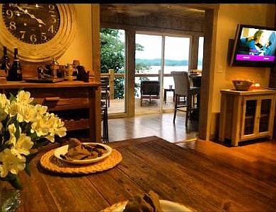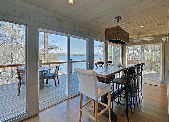 Quintessential Lake Cottage with UNBELIEVABLE LAKE & MOUNTAIN VIEWS! This newly remodeled deep water lake front home features the perfect blend of Modern Rustic Features and Contemporary Flare. Features include Quartz Kitchen counter tops with Stainless Steel GE Cafe Series Dual Fuel Oven, Sunroom with wall of glass windows overlooking the lake, see-thru cable railing, Large PARTY DECK for entertaining, Bathroom features include white subway tile and OVERHEAD RAIN shower, Finished Terrace Level with Full Bath. Gorgeous Boulder Landscaping and Flowers, Outdoor Firepit along the shoreline, Covered Boat Slip, Ample Parking and within Close proximity to downtown Blue Ridge. You won't find a better view for under a million dollars! 07/13/16