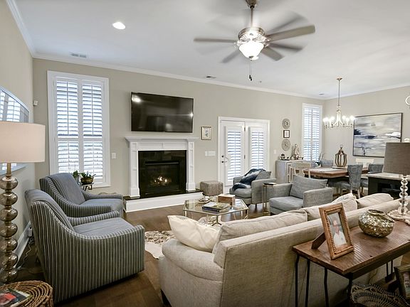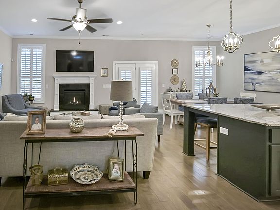 Maintenance free living in this all brick home located in gated golf community in Woodcreek Farms. This Somerset plan has an owner's suite down, two additional bedrooms and a second full bath. The FROG has a full bath and could be a 4th bedroom. Hardwood flooring throughout main level including the bedrooms. Custom plantation shutters, powder coated aluminum fence in backyard, and upgraded lighting added by owner. Open floor plan with large island, pot filler, gas cooktop, granite counters, tiled backsplash, recessed lighting and pantry. Don't want to do yardwork? No worries, it is all included in your HOA dues.