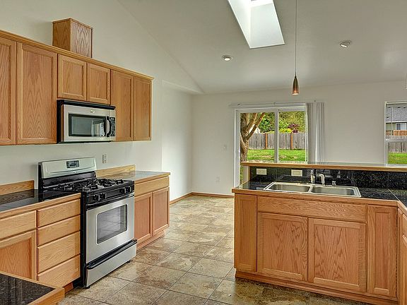 Gorgeous like new 1750+ sqft rambler on over 1/4 corner lot in Gold Bar! Light & bright floor plan boasts soaring ceilings, gourmet kitchen w/granite counters & stainless appliances, fresh paint in & out, new carpeting throughout, designer tile & more. Other features incl master suite w/walk-in closet & 5pc ba w/jetted tub & designer tile, dining w/coffered ceiling, gas furnace & fireplace, skylights, 2 car garage & huge level fenced back yard w/360 degree view of mountains & Wallace falls.