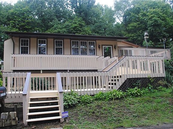 OPEN FLOOR PLAN GREAT FOR ENTERTAINING. LARGE PRIVATE DECKS, 15X15 HOT TUB AND STEAM ROOM, 16 X 13 WORK-OUT ROOM, LARGE KITCHEN WITH BUTCHER BLOCK CENTER ISLAND ,BAR AREA,CATHEDRAL CEILINGS,SKYLIGHTS. HUGE FAMILY RM WITH FIREPLACE AND ACCESS TO DECKS. MASTER BEDROOM SUITE HAS CATHEDRAL CEILING AND 12X11 BATH, WHIRLPOOL TUB, LARGE CERAMIC TILE SHOWER,DOUBLE BOWL SINKS, SKYLIGHT SEPARATE COMMODE RM, TV & FIREPLACE. ENTRY IS SUN ROOM OR EAT-IN AREA. 12X16.WITH STORAGE. LAUNDRY IS CLOSE TO KITCHEN. NEW CARPET.VERY CLEAN HOUSE LOTS OF WINDOWS AND SLIDING GLASS DOOR. PRIVATE AND TUCKED IN THE WOODS.