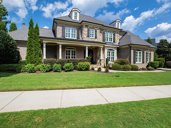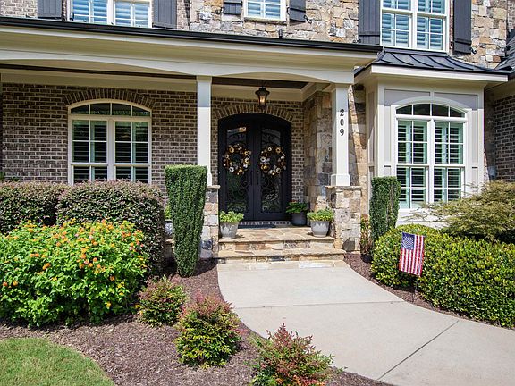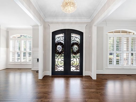 Upon entry through the elegant steel doors, your eyes are drawn through the open floor plan, through the custom four-inch shutters, to the rear lanai and pool area that is paved with flagstone. The mature landscaping that surrounds this MJR custom-built home offers privacy for the most discerning. Site-finished hardwood flooring flows from the dining area into the family room, kitchen and butler's pantry areas. Thermador appliances, including a 6-burner gas stove with a griddle and double ovens, compliment the chefs kitchen. Handcrafted millwork flows throughout, featuring a coffered ceiling and custom built-ins on each side of the gas fireplace in the family room, perfect for gathering and entertaining. Enjoy main-level living with a primary owner's suite, guest suite, office space and laundry. The owner's bath provides a spa-like experience with exit to a private lanai at the spa and pergola. The upper level offers a second laundry room with three spacious guest suites and theater room. A stroll to the renowned Koka Booth Amphitheater or a short drive to downtown Cary provide enjoyment for all within reach.