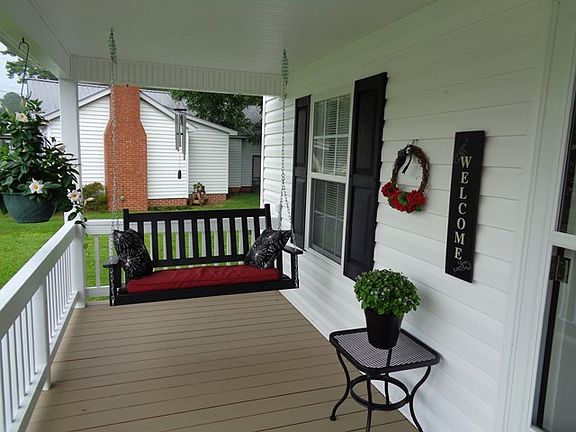 CUTE AS A BUTTON! This cozy cottage style home should be featured on HGTV! It starts with a welcoming front porch, that invites you to sit in the porch swing or pick a rocking chair. Inside you'll find an open floorplan that features a living room, dining area and a kitchen that you will love cooking in, appliances included, breakfast bar, and lots of cheery, white cabinets. There are two good sized bedrooms with ample closet space and an updated bath. At the rear of the home is a nice laundry area with cabinet storage.Outside you will fall in love with the covered rear porch, complete with ceiling fans, where you will enjoy casual dining, grilling, or just relaxing and every man's dream - a 28 x 32 detached garage with double overhead doors and it even comes with a window unit air conditioner. Completely remodeled in 2007, this home is MOVE IN READY!