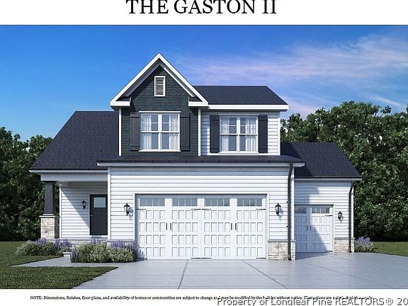 The Gaston II features 1912 sq. ft. with 3 bedrooms, 3 baths, and a 3 car garage. Master features his and hers vanities. Front and back covered porches. Large gallery entrance. Home is located close to Lillington and a short commute to Fayetteville, Fuquay Varina, and Sanford. All images are for illustrative purposes only and individual homes, amenities, features, and views may differ. Delivery dates are approximate and subject to change without notice. Images may be subject to copyright.