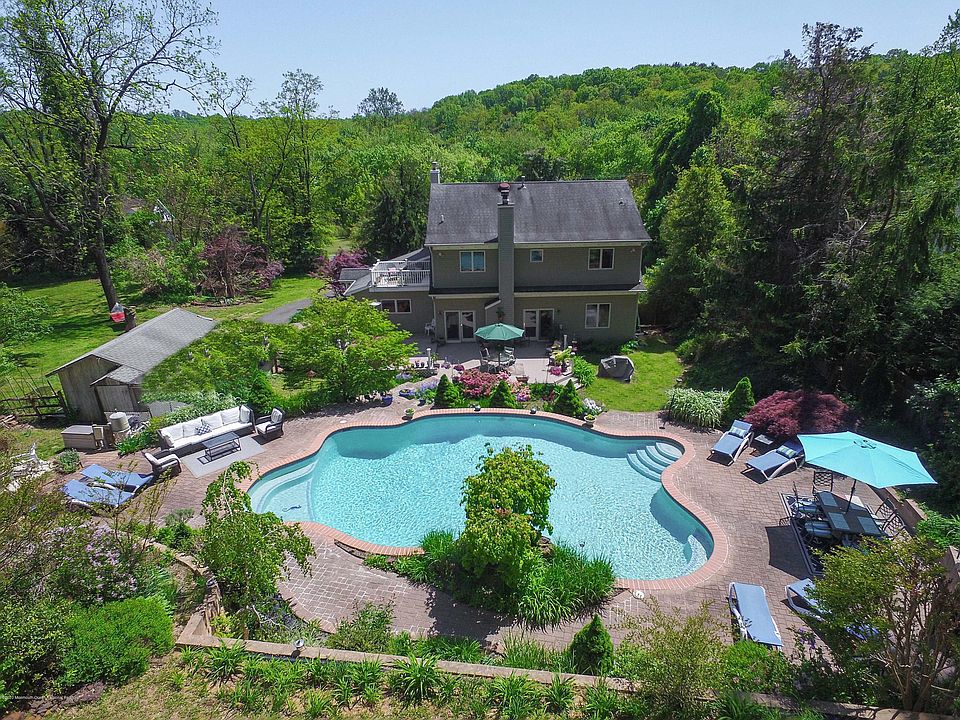 Come unwind at''THE GREAT ESCAPE''. This RARE Farm House w/ absolutely stunning Resort Style Grounds. MOTHER/DAUGHTER possibilities via your FULL WALK-OUT BASEMENT. This home boasts 5Bds including ur Master Suite w/ XL Private Balcony & Bth. The Vaulted Ceiling XL FARMHOUSE KITCHEN is adjacent to Formal Dining Rm & Family/Great room featuring HIGH CEILING, FIREPLACE & DIRECT ACCESS out to several tiers of PATIOS, sprawling gardens, HOT-TUB, LUXURIOUS POOL.. 5Min to FERRY via NYC in 45min. 10min to DOWNTOWN RED BANK, ONLY 7 min to BEACH