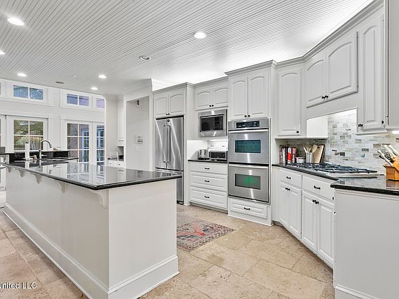 Don't miss this very special home nestled in a quiet cul-de-sac in the highly sought after Dinsmor neighborhood in Ridgeland. Designed for entertaining, both indoors and out, this spacious home has so much to offer, including a beautiful gunite pool. With abundant curb appeal, the stately brick home with gas lanterns welcomes visitors through the double glass doors into the stunning foyer, with a soaring ceiling measuring 20 feet. Wood floors and a neutral palette create serene, airy spaces in the formal rooms. A sun drenched formal living room features a fireplace and French doors opening onto the patio. The formal dining room offers a designer chandelier, bay window, and a beautiful arched, lighted built-in china cabinet. The kitchen/keeping area is truly the heart of the home and will be a favorite gathering spot for friends and family. A wall of windows on one side overlooks the patio, while keeping the kitchen area bathed in natural light. The expansive kitchen offers so much space- counter space, storage space, prep space- that will delight the foodie in the family. Black granite countertops, white cabinetry, undercabinet lighting and a stylish marble backsplash keep the kitchen looking sleek and stylish. Stainless appliances include double ovens and a gas cooktop, as well as an icemaker and wine cooler in the bar area. There is barstool seating for snacks and casual meals, as well as a breakfast area. There is even a built-in desk for paying bills and keeping the household organized. The kitchen adjoins the keeping room, featuring a fireplace flanked by built-ins to store your favorite books or collectibles. The primary suite features wood floors and provides access to the patio. The primary bath offers beautiful travertine counter tops with double sinks, a makeup area, a soaking tub, walk-in shower, water closet and 2 separate closets. The space stays sunny and bright thanks two skylights. There is also a guest bedroom on the first floor, with a stylish bathroom featuring marble flooring as well as marble tub/shower surround, and granite countertops with an under mount sink. Upstairs a massive den with built-ins on three of the four walls provides a very flexible space that can be used in a variety of ways. It can be a playroom, a teen den, study area, exercise space- the possibilities are endless. There is a small room off this expansive den that would be perfect for a home gym or hobby room. Yet another space on the second floor is currently being used as an office. There are also two bedrooms, each with updated ensuite baths on the second floor. Outside, a spacious brick porch provides endless opportunities for outdoor dining and entertaining. Just down from the porch, a beautiful gunite pool and cabana will provide countless hours of summer fun. There is plenty of mature landscaping surrounding the pool, including roses and butterfly bushes. There is plenty of space for guest parking at the end of the crepe myrtle-lined driveway, just outside the three car garage. All this and so much more, in a conveniently-located neighborhood offering a pool, clubhouse, tennis courts and walking trails within minutes of countless shopping, dining, and entertainment options. What are you waiting for- call your realtor today!
