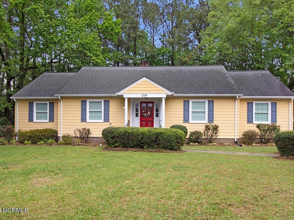 Location, Location, Location. This Home is very well maintained and located within 5 miles of Seymour Johnson Air Force Base, Berkeley Mall, and major highway. It is within 1 mile to grocery shopping. Situated on a large cul-de-sac lot with mature trees for a private backyard. Features a large Kitchen with plenty of counter space and lots of cabinets. There is a pantry in the kitchen and laundry-room. The mud room boast a built-in-desk with a half bath made for easy clean-ups. This home has large living-room , dining room and a den with fireplace and built-in book shelves on both side. Large master bedroom with walk-in closet and private bathroom. You will find the 2 other bedroom are spacious as well with another hall bathroom. Don't forget the outside beautiful screen in porch with unique wooden roof and decks made for great grilling. You will not be disappointed with this home. Come and see!