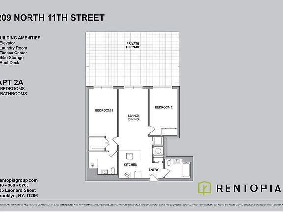 Welcome to this brand new 2bed/2bath with *Huge Private Terrace* in Prime Williamsburg! *Brand New Building right Infront of McCarren Park!* *NO FEE* This Apartment is Fully Equipped: - 2 bedrooms, 2 full bathrooms - Modern kitchen with high-end appliances - Floor-to-ceiling windows for abundant natural light - Stylish bathrooms with contemporary fixtures - Hardwood floors and elegant finishes throughout - In-unit washer and dryer for convenience -Spacious living and dining area - Private balcony First-Class Building Amenities: - Rooftop terrace with panoramic views - Bike room and a package room - State-of-the-art fitness center This building is located in Prime Williamsburg, Adjacent to McCarren Park, perfect for outdoor activities. Also in Proximity to a variety of cafes, restaurants, and entertainment options. Easy access to public transportation for effortless commuting! G & L train line are steps away so commuting to Manhattan will be a breeze! I can show all available apartments in this building Reach out to me about this apartment or any other Exclusive Rentopia Listings and ill provide you with the best fit possible! - Pet friendly - *Fast and easy approval process* - Easy online application *TEXT/CALL FOR QUICKER RESPONSE* Smoking allowed:No