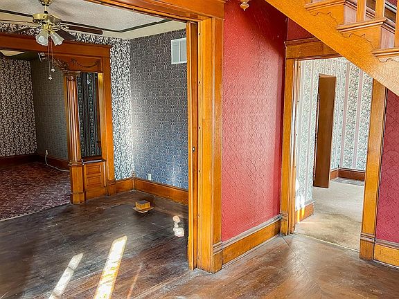 Property offered at ONLINE ONLY auction. BIDDING OPENS:Thursday, December 8th, 2022 at 2 PM (cst) | BIDDING CLOSING: Thursday, December 22nd, 2022 at 2:10PM (cst). Bidding will remain open on this property until 1 minute has passed without receiving a bid. Property available to preview by appointment. CLEAR TITLE AT CLOSING, NO BACK TAXES. ONLINE ONLY!!! This two-story Victorian home sits on a large corner lot surrounded by sidewalks and mature trees. There is a spacious covered front porch and a smaller covered porch on the side of the home along with a detached two-car garage with alley access. Entering the home you will find a sizable foyer showcasing the staircase and welcoming you to the formal sitting room. The sitting room leads to the formal living room and is adjacent to the formal dining room. With original, ornate woodwork and beautiful pocket doors, the main floor creates a cozy gathering space. There is a bedroom and a full bathroom with a tub/shower combo on the main floor. The spacious kitchen provides eating space, has a laundry cove adjacent, and leads to the enclosed mudroom. Upstairs are three sizable bedrooms, a full bathroom with a claw foot tub and a water closet, and an additional storage room. With closets under stairs and tucked-in corners, a full basement, and an easily accessible attic, this home leaves no space untouched. Don't miss this amazing opportunity! *Buyer should verify school assignments as they are subject to change. The real estate is offered at public auction in its present, “as is where is” condition and is accepted by the buyer without any expressed or implied warranties or representations from the seller or seller’s agents. Full auction terms and conditions provided in the Property Information Packet. Total purchase price will include a 10% buyer’s premium ($1,500.00 minimum) added to the final bid. Property available to preview by appointment. Earnest money is due from the high bidder at the auction in the form of cash, check, or immediately available, certified funds in the amount $5,000.