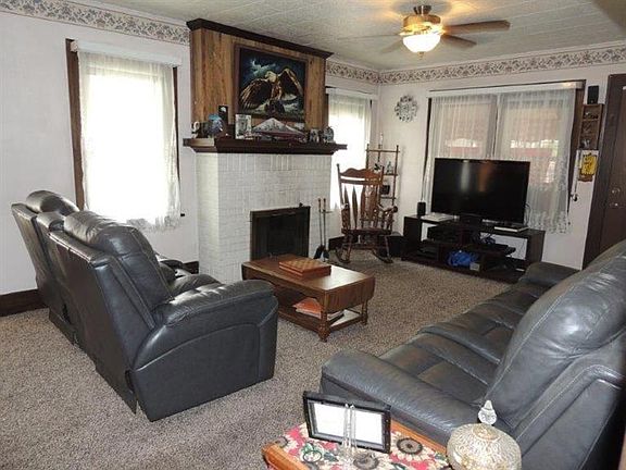 Such a charming home! Come and visit this home, which is MUCH larger than it looks. Very nice inviting living and dining room with wood fireplace. There are two main floor bedrooms and 1.5 bathrooms. The kitchen has plenty of cabinet space and room for a small table. BONUS ROOM to the back of the home!! Very great addition can be used as a family room, exercise room, or space for a home business. Partially finished basement has 2 non-conforming bedrooms and a shower, nice workroom, and ample storage. Great fenced in yard with concrete pad for a pool. Cozy front porch to relax on . MANY improvements have been made including newer roof, gutters, windows, doors, security system, carpet, and MUCH more!! Single detached garage. PRICED TO SELL!! Come view it today!