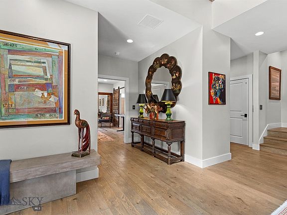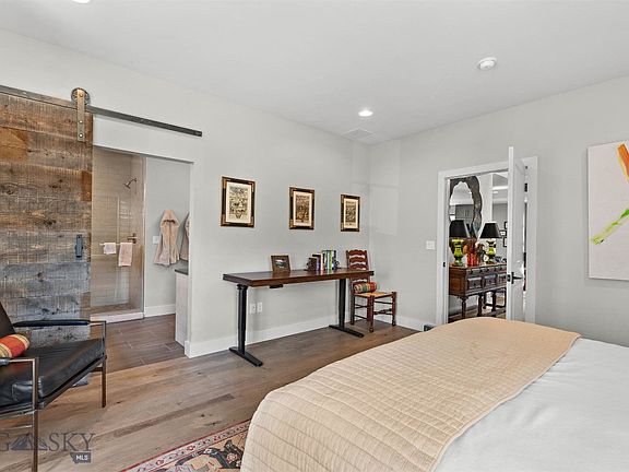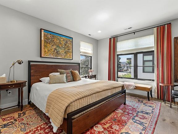 Stunningly designed townhome just steps from downtown Bozeman's restaurants, shops, bars, & entertainment. Breathtaking views in all directions from the enclosed penthouse, two rooftop decks, and a wet bar. Spectacular finishes include a local artist designed "explosion light" fixture in the two story entry, custom-built fireplace surround and bookcase in the living room, hardwood floors throughout, and an elevator for easy access to every level from the garage all the way up to the rooftop. Main level has an incredible bedroom suite fit for guests or as a Primary Suite. The Spacious Primary Suite on the second level has double closets and spa-like bathroom. The lower garden level is currently used as an art studio space complete with kitchenette, a full one bedroom plus full bath, and walk-in closet, all of this with a private entrance and separate and utilities. A Private neighborhood art and mindfulness park is just a couple doors down, and Beall Park is just a block away.