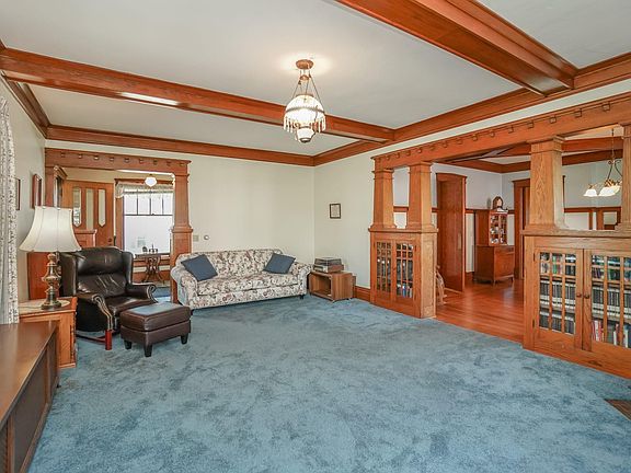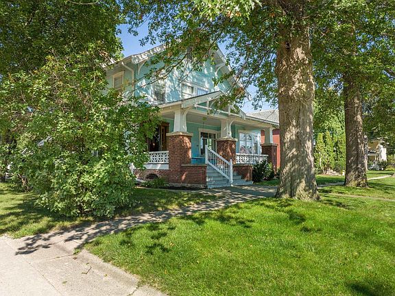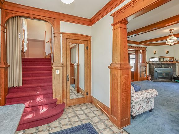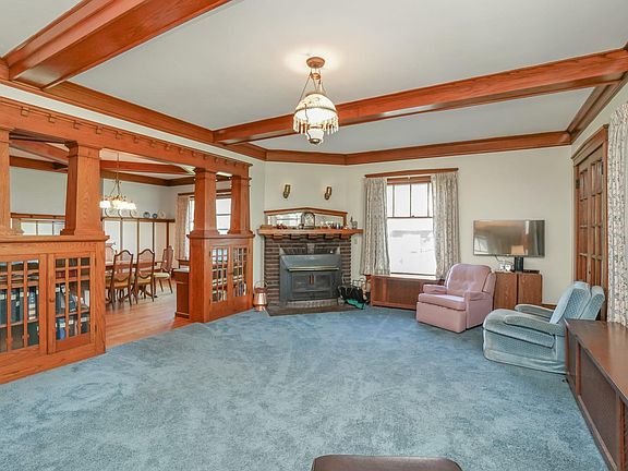 In 1916 the owners of the local lumberyard carefully constructed every detail of this historic classic home. They used the home as a showcase to the quality of their workmanship and the family lived there for years. Many of the original features remain such as the beautiful woodwork, hardwood floors, crown molding, wood beams, foyer with grand staircase, large living room with wood burning fireplace, dining room with built-ins, sunporch for your plants, leaded windows, light filled 5 bedrooms with a bonus nursery/office room, and additional finished rooms in the lower level. The St. Charles eat-in kitchen is sure to please with back staircase and main floor laundry. The front porch calls you to sit and enjoy the simpler life. The garage is a 2 stall with storage above and a carport. The current family has cherished this home for over 50 years and hopes the next family will have many great memories there as well.