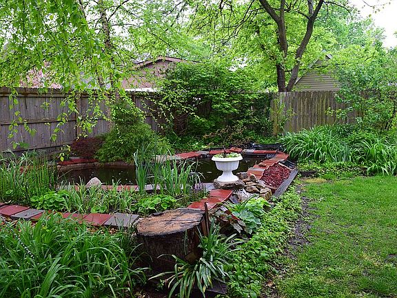 EDIBLE ECOSYSTEM HOME! Enjoy a breakfast of homegrown fruits while serenaded by songbirds. Feast on fish from the pond and wine from your mini-vineyard, then stroll to the public library, MU, Grant Elementary, grocery store or downtown! The verdant yard bursts with raspberry, blackberry, strawberry, grapes, currants, prickly pear cactus, persimmons and paw paws. In the fenced backyard, fish swim in a 1600-gallon pond filtered by solar aquaponics. Native wild flowers abound. Home features newer wood laminate flooring on the main level (2015). Kitchen has pantry, all kitchen appliances & newer tile flooring (2015). French doors & safety features added in 2014, including front door keyless entry. Upper level has master suite with daybed, window seat, walk-in closet & full bath.