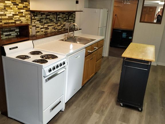 One Extra large bedroom 11X23 with new paint, remodeled bathroom and remodeled kitchen with dishwasher, range with oven, microwave, sink and open shelving. There is a nice island for extra storage and a HUGE pantry.....all REDONE!! This is the basement of a house, totally separate from the upstairs, walk out into alley, ample parking, but no yard. Room for a BBQ. Short 3 minute Walk to Downtown Castle Rock with their Art Shows, Shopping, Restaurants and Events. 5 minute commute to I-25. Awesome neighbors. Pets with deposit. Utilities per month are $138 and include gas, water, trash, electricity and Xfinity high speed internet with TV box. One year lease with background check is required. Pet deposit of $300 refundable if no damage. No monthly pet rent. There is no yard, but room for a BBQ and sitting space. This is a non-smoking home, there is a place to smoke outside. Utility fee of $138 a month includes gas, water, electric, trash and Xfinity high speed internet with TV box (basic). For some reason Zillow states that the electricity, gas and garbage are included in the rent, when there is a separate utility fee of $138 a month. Pets allowed on a case by case basis with pet deposit.
