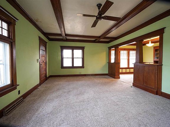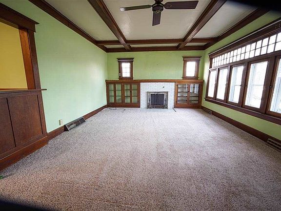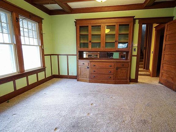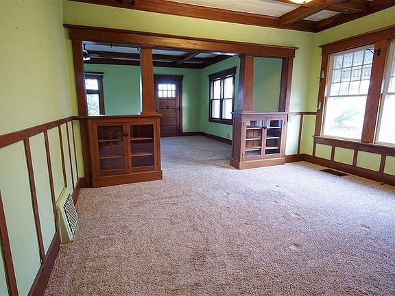 Spacious 3-4 Bedroom 1 Bath 1.5 Story On A Beautiful Mature Nearly 1/2 A. Lot At The Sw Corner Of N High St & Ely Ave Across The Street From The The Water Tower. From The Large Covered Front Porch You Enter Into A Huge 14x24 Living Room W/ The Original Oak Trim And A Coffered Beamed Ceiling Which Also Extends Past The Attractive Oak Colonnades Above Glassed Storage Right On Into The Formal Dining Room Which Also Offers A Built-In Hutch/Buffet. The Living Room Also Provides You With A Cozy Wb Fireplace Nestled Between Built-In Oak Bookcases With Glass Doors. The Kitchen Offers Laminated Oak-Grained Cabinetry, An Abundance Of Counter Space, Stove/Oven & A Built-In M'wave. Don't Want Steps, You Say? For Your Convenience This Home Also Offers A Main Floor Bedroom, Full Bath And A 11x11.5 Laundry Room. You'll Find 3 Additional Bedrooms Upstairs. Outside Dad Will Enjoy A Double Garage W/ Opener Plus Another 18x20 Steel Sided Garage Built In 2009 And Plenty Of Room On The Expansive Lot To Add Even More Garage Space If Needed. An Older Sink, Stool & Metal Shower Stall, Hi-Efficiency Gas Furnace W/ Central A/C, An Updated 100 Amp Electrical Panel W/ Breakers W/ Plenty Of Space To Add More Circuits Is All Found In The Unfinished Basement. Estate Selling "As-Is".