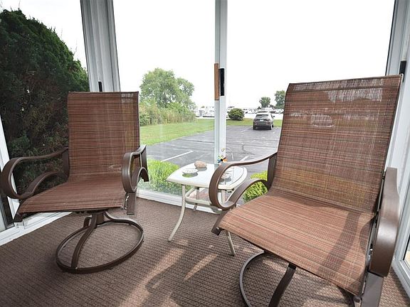 PICTURESQUE LAKE ERIE AND MARINA WATER VIEWS! Situated in a quiet, full-time community, Lakefront Villas with dockage available nearby. Spacious, sun-filled living room for relaxation and enjoyment with water-views from the three seasoned room. Great kitchen with abundance of counter and cabinet space, appliances remaining, and access to an outdoor deck for grilling, entertaining and a spacious backyard. Conveniently located first floor half-bath. Second floor features a full-bathroom with access nearby from the two bedrooms. Relax and enjoy the views from the master-bedroom. Step on out to the three-seasoned room and enjoy a good book while watching the Jet Express, sail boats, and wild-life. Master hosts a walk-in closet. Not far from the Jet Express, downtown Port Clinton, Marblehead, Catawba and the Lake Erie Islands. If you are an avid boater, fisherman, or Lake lover, you will love this one! At this price, it will not last long!(Sq.ft., room sizes, and dates are approx.)