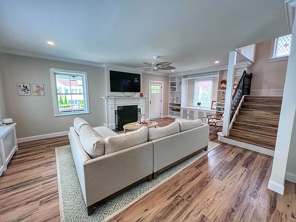 SUMMER SEASON RENTAL, MEMORIAL DAY - LABOR DAY 2025! This is a completely remodeled home in prestigious Parkway section of Margate - a true hidden gem offered for summer season rental! This stunning 4 BR, 2 BA, 2 half bath home offers a plethora of upgrades and a prime location! This home oozes charm inside and out. Step inside from the quintessential front porch to discover a top-to-bottom renovation that will leave you in awe. The first floor welcomes you with beautiful hardwood floors and an open floor plan. The spacious living room features a gas log fireplace, creating a cozy ambiance. Adjacent to the living room is a dining area, perfect for entertaining guests, along with a powder room for added convenience. The remodeled kitchen is a chef's dream, equipped with butcher block countertops and an abundance of storage space. Adding to the versatility of the floor plan is a den with a bar, which also includes another powder room, offering extra flexibility for entertaining guests. On the second floor, you will find four generously sized bedrooms and two full bathrooms. The primary bedroom includes a beautiful ensuite bathroom, adding a touch of luxury. Three additional well-appointed bedrooms and a shared full bath complete the second floor. A game room with a ping pong table on this level grants access to a deck, providing a picturesque spot to savor breathtaking sunsets. Outside, a spacious back patio awaits, complemented by an expansive backyard featuring a firepit and barbecue area. This outdoor space is perfect for hosting gatherings and enjoying outdoor activities. For added convenience, a storage shed dedicated to beach gear and an outdoor shower are provided. Location is key, and this home delivers! Situated in the desirable Parkway section of Margate, you'll have easy access to all the amenities this charming area has to offer. Take a short stroll to the beach, playground, tennis and basketball courts, baseball fields, shopping, and a variety of restaurants. Don't miss this opportunity to stay in a truly remarkable home that combines modern upgrades with a coveted location. Summer Season 2025 rental available Memorial Day-Labor Day for $65,000. Pets will be considered. Security deposit, $6,500. Pet deposit, $500. Background credit check required.