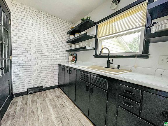 209 N Maple is the perfect starter home. With numerous updates and endless potential with the unfinished basement, this 2 bedroom, 1.5 bath home is perfectly cozy, yet spacious. After entering the entry way, you will see a large living space with hardwood floors. The kitchen has been remodeled with its modern aesthetic. New light fixtures and blinds throughout the house as well as remodeled flooring and paint. The floating shelves in the kitchen are the perfect touch. Both bedrooms upstairs provide plenty of space and natural light. The bathroom has been recently renovated as well. The washer and dryer are in the basement as well as a toilet. Potential to add 2 bedrooms, 1 bathroom, and second family room in the basement. A fence was just added in the backyard allowing space for privacy. Come check out 209 N Maple in Paullina.