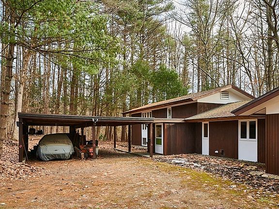 Classic Mid century 1971 ranch style home situated on 3.44 acres with plenty of room for outdoor activities! This one owner home offers four bedrooms and 2 1/2 baths, a total living space of over 2,000 square feet. The spacious living room with large windows lets in plenty of natural light & has authentic mid century detail and fireplace. The kitchen is functional but awaits new ideas for updates. The breakfast nook & dining room both with sliders for direct access to the backyard. The main bedroom features an en suite bathroom and walk in closet. Office and laundry area complete the main level. Two additional bedrooms share a full bath on the second level. The partially finished area in the basement can be additional living space. A home with lots of possibilities and potential on a spacious lot only minutes to Amherst makes a great opportunity for the new homeowner.