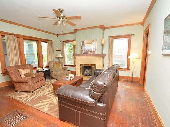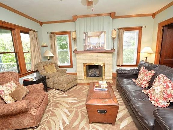 So much charm and natural light in this home on a quiet street. Relax on the composite front porch and watch the leaves change on the hillside. Enjoy the warmth of the gas fireplace in the large living room with maple hardwood floors. The flooring flows into the dining room and kitchen with an island, updated cabinets and counter tops. A back pantry area and porch complete the first floor. Upstairs is all hardwood floors with a full bathroom and 3 bedrooms. A walk up attic is set up for a bedroom and open play area or lounging area for children. a shared driveway, pull off area beside the house that leads to the back yard. Seller is offering a concession of $2,000 to a buyer toward flooring.