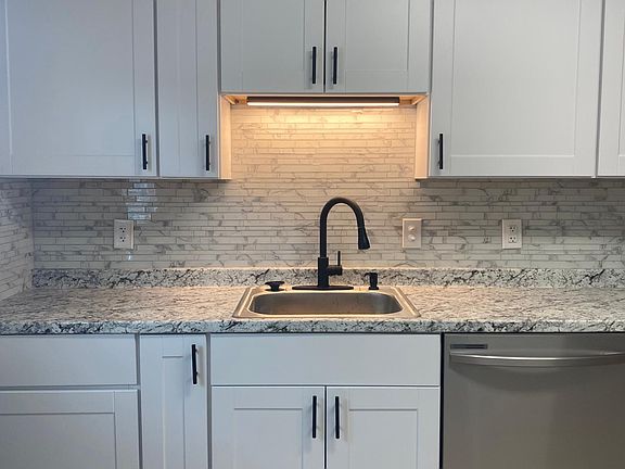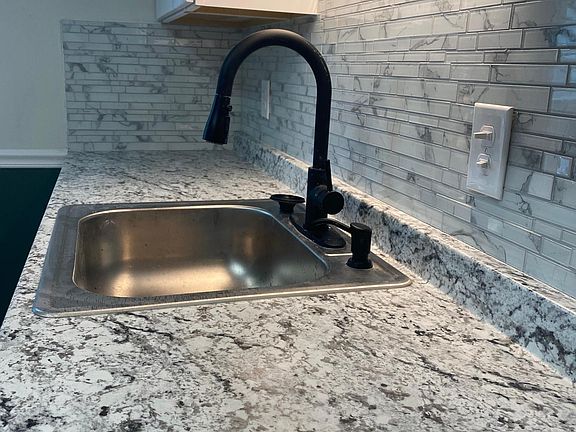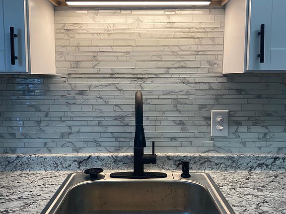Fresh paintEat-in kitchenKitchen backsplashLarge bedroomKing size bedTile floorGarbage disposal