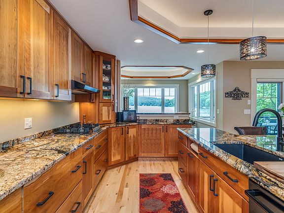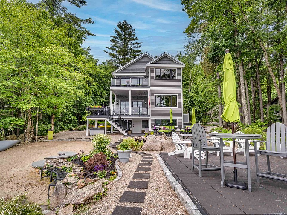 Welcome to an extraordinary four-season paradise nestled in the heart of Merrymeeting Lake's "Pleasant Cove." Celebrated for its crystal-clear, spring-fed waters, Merrymeeting is known for its rich culture of conservation and year-round outdoor recreation. This custom-built, meticulously maintained home has an open-concept layout, showcasing stunning lake views from every angle. The kitchen is a chef's dream, featuring a large island, a walk-in pantry, and beautifully crafted cabinetry. Relax in the sunroom and soak in the serene views or cozy up to the gas fireplace on chilly nights. The primary suite is a true sanctuary, featuring an oversized walk-in closet and a luxurious bathroom with double sinks, and a walk-in tiled shower. Start your day with a cup of coffee in the cozy nook or on the private balcony. Above the garage, you’ll find a separate suite complete with two bedrooms, a full bathroom, a living room, and a kitchenette area. The beautifully landscaped yard, sandy walk-in beach, multi-boat dock, hot tub, and built-in beach fireplace provide endless opportunities for outdoor enjoyment. Additionally, the property includes outdoor RV or EV charging and parking. Showings are delayed until the open house on Saturday, 6/29 from 10-3. Please note that while the septic system is rated for two bedrooms, the home is being used as four bedrooms, providing ample space for family and seasonal guests. Don't miss this incredible opportunity to own a piece of paradise!