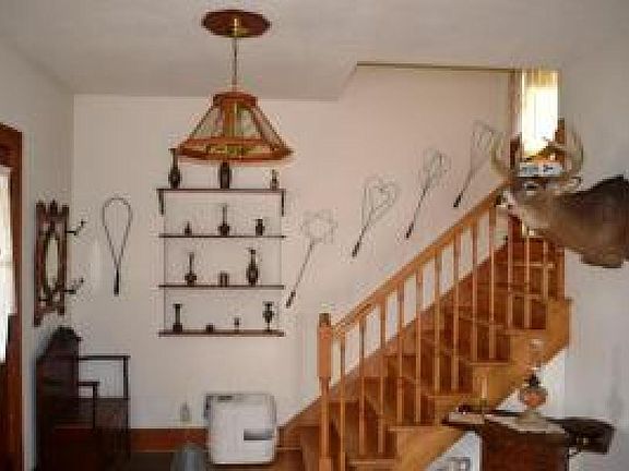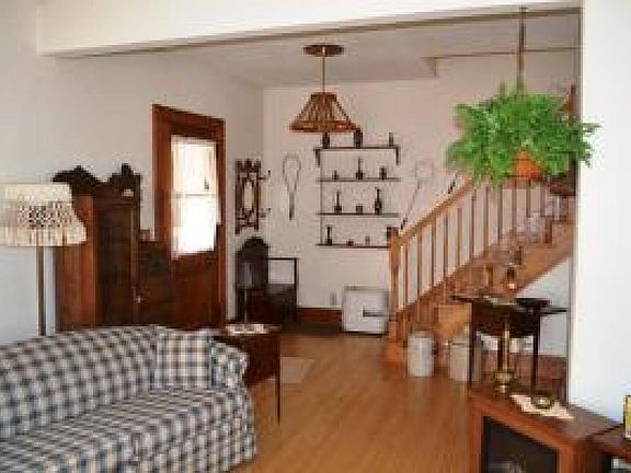 A perfect setting for your antiques! This lovely home has refinished hardwood in living, dining and kitchen. The kitchen stove, refrigerator and dishwasher are included. The deck off the dining room has a Sunsetter awning for extra outdoor time. 2nd floor has 3 bedrooms plus a bonus room presently being used for storage. The bath has been updated and still has that historic look. To keep energy costs low, there is an auto exhaust fan in the attic. INC:Water softener, washer & dryer. Garage not being used