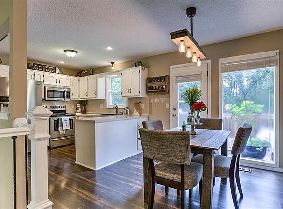 Perfect, bright and vaulted front to back split w/so many updates! Large, open living room leads up to kitchen/dining combo w/white cabinets & stainless steel appliances! Bright bedrooms, including large master suite w/walk-in closet and master bath w/gorgeous ceramic tile walk-in shower! Finished walk-out basement provides additional living space! Relax on deck or covered patio overlooking giant fenced backyard backing to gorgeous green space! Enjoy quiet mornings on the deck while still in the city!