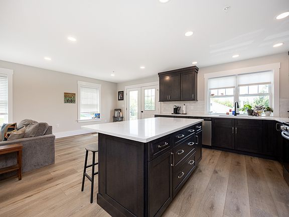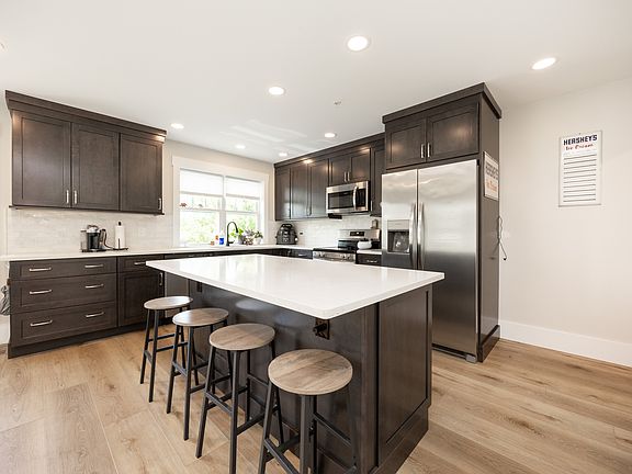 The main level features an open-concept living area with plenty of natural light, seamlessly connecting the stylish kitchen, dining space, and living room perfect for entertaining or relaxing at home. The kitchen showcases sleek cabinetry, modern appliances, and a large island with seating. Upstairs, two bedrooms, a common area living room, and a full bath offer ample space for guests, family, or a home office. The top floor is a wonderful primary bedroom and en-suite bathroom.