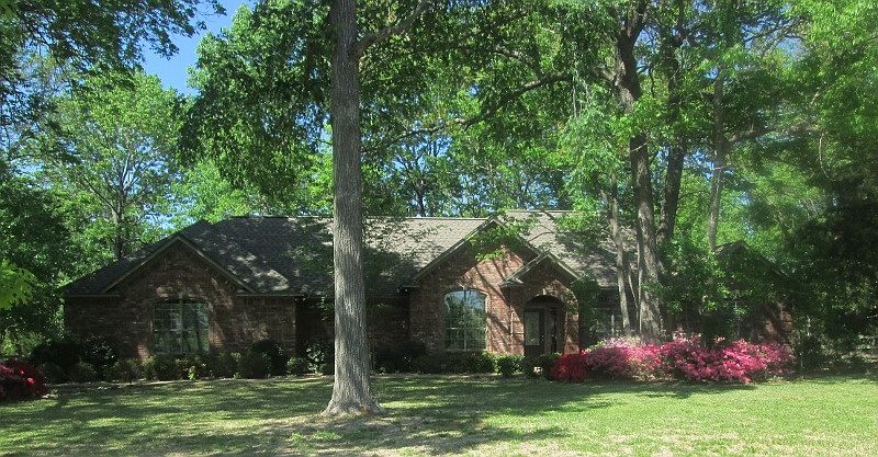 Breathtaking drive up appeal with majestic trees surrounded by large azalea beds. This well maintained and updated home sits on 1.855 acres. Open floor plan with walls of windows for lots of natural light, corner fireplace, breakfast bar and separate dining area. Split master bedroom, large master bath with "Kerdi" shower and huge walk in closet with built in Storm Room /Safe Room/Gun Safe, box up ceiling and door to access back patio. Kitchen updated with new countertops, sink, faucet, and convection microwave oven and dishwasher. Home also has a central vac. 2 car garage attached, plus a 2 car detached 24 X 30 Medal building w/electric , & lights with space for RV (gravel) on the side. Plus garden shed for lawn mowers and other tools w/ electric, water and lights. Fenced back yard w/2 double drive thru gates. If you're looking for a quiet, serene place to call home, look no further!