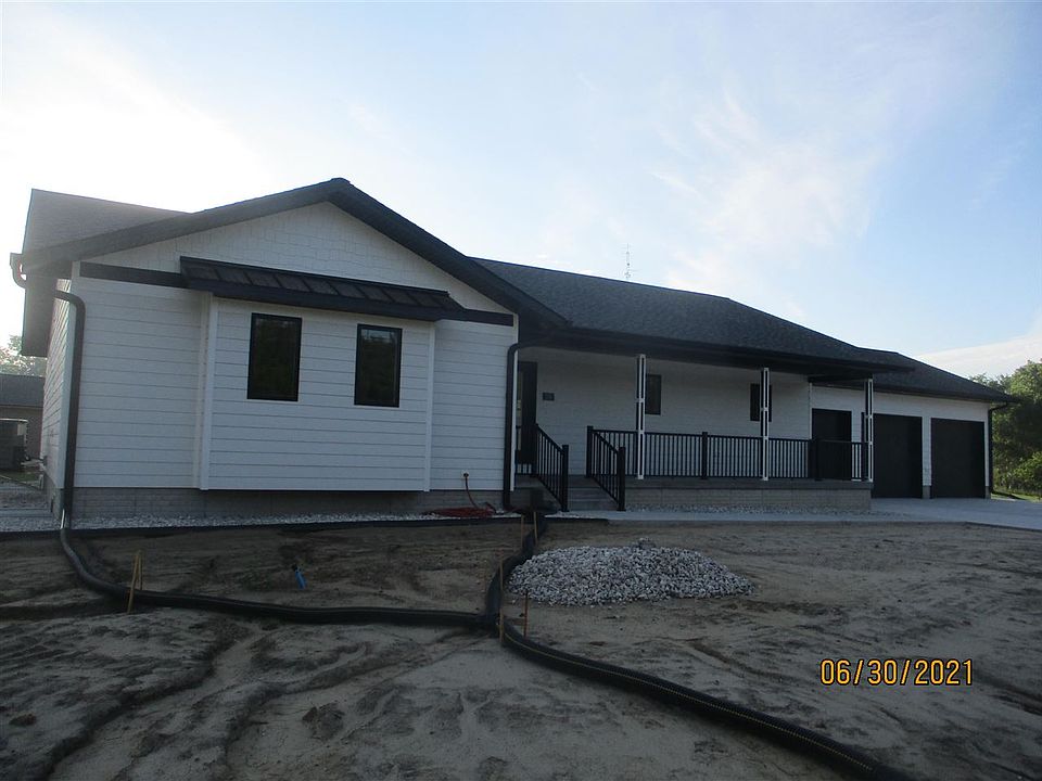 Freshly built !! Beautiful Ranch home on 1/3 acre! Quality of Workmanship is Excellent!! Many features are incorporated into the design and floor plan !! Cathedral ceilings in main living area with raised display area with accent lights and electrical plug for displaying that "SPECIAL" collection! There is a "Nifty" implementation of a decorative window between the kitchen and the pantry/utility room. Wonderfully laid out kitchen and island area featuring Brand New LG appliances !! Roll out trays, soft close hardware and more ! Large Onyx walk in shower in master bedroom bathroom and a double sink for those busy mornings!! There is a patio off the kitchen area. The garage is 3 car with 860 square feet of space and fully insulated with 2x6 walls . Basement if full and unfinished but studded with spray foam walls already completed ! 2 egress windows would allow for 2 more bedrooms in the home. There is a stubbed in floor bathroom between the basement bedrooms. The well tank pressure system for the house is in the in utility room along with water softener unit in the basement. High quality Marvin windows,LP Smartside siding, all exterior walls are spray foamed then cellulose insulation installed . VERY high R value home for great energy savings ! Just minutes from town with a lower RE tax rating all on 1/3 acre !! A REAL must see , high quality built home that is move in ready ! NOTE : Lawn will be installed in the next week or so ( weather needs to cooperate )