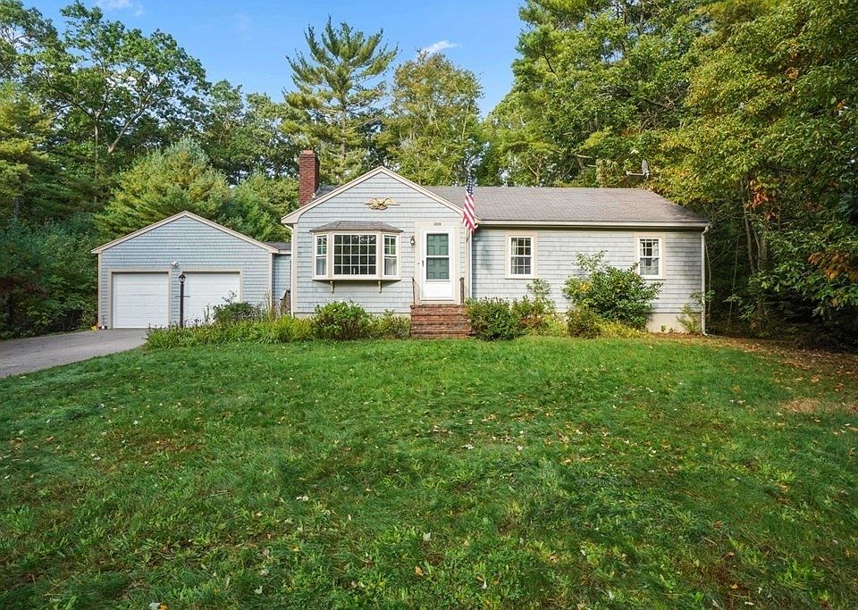 Adorable ranch set back from road on Duxbury line, on country road near blueberry farms, shopping, restaurants, ice-cream, coffee, driving range, and a short short ride to Route 3 and to the train into Boston. Kitchen and bath are dated, but house has hardwood floors, fireplace, and a newer, oversized attached garage plus a full basement and a pull-down attic for storage. The lot is lovely and the setting quite private. A new, mounded septic will be installed out back prior to closing. House being sold "as is". No open house - but home will be available both Sat & Sun afternoons (only), by appointment.