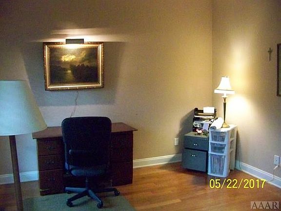 This Donald Gardner home-designed takes advantage of the creek views & cross breezes. On lot 15 & .165 ac of Lot 16, just down from community pool. Wrap-around front porch, screened-in back porch, with deck & dock overlooking bulk headed creek front. Spacious 1st floor master suite with walk-in closet & porch. Master bath has dual vanities, jetted tub & bay window. Another downstairs BR can be study/office. Living room complete with gas FP. Open kitchen w/silestone counters, cook's stove & large island. Adjoining dining room. Upstairs bedrooms w/adj rms for playroom/storage. Large FROG.