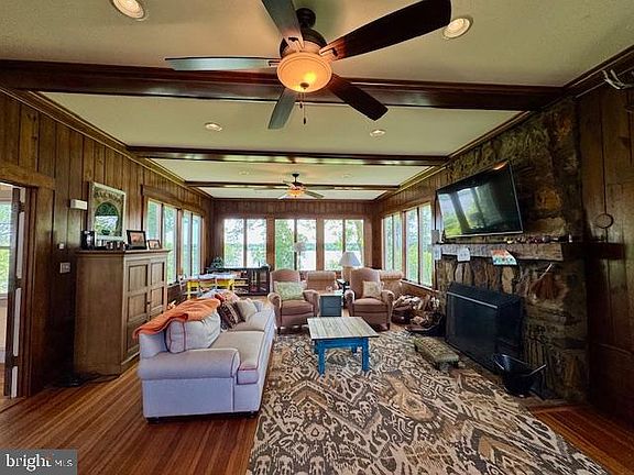 CAPTIVATING riverscape views!!! Waterfront on the Elk River, 7-8 bedroom, 4.5 bath coastal home built in 1930 offering 4,326 sq. ft. of living space and situated on 5 private acres in the sought-after Elk Neck community. As you enter the living room, you will be greeted with beautiful original hardwood flooring, a lofty wood beamed ceiling, stone wood burning fireplace and a wall of windows offering breathtaking riverscape views. Hardwoods continue throughout the main level which features a spacious formal dining room with original built-ins, 2 bedrooms, full bath and a recently updated kitchen. Kitchen details include an island with seating, propane cooking, double wall oven, loads of cabinetry, farmhouse sink, beverage fridge, large pantry and stainless steel appliances that includes two refrigerators (also includes a second laundry area). Accessed by a rear foyer/mudroom is a sprawling screened-in porch, ideal for family gatherings, entertaining or summertime crab feasts! Dual staircases lead to the upper level, featuring hardwood flooring throughout, 3 full bathrooms, 1 half bath, convenient laundry, bonus room (includes closet), 5 bedrooms, including a primary bedroom boasting a vaulted ceiling with skylights and a cedar walk-in closet. Loads of historical charm throughout! Waterfront details include a recently added perpendicular pier which features a boat house, screened-in porch and covered pavilion, as well as a sandy beach and shed with electric. Property upgrades include composite stairs leading to the waterfront area, 4 A/C units and a propane furnace. Additional property details include a detached 2-car garage, playhouse and guest cottage that will require renovation if desired. Truly a waterfront private oasis! If you are searching for a spacious, off the beaten path, historical waterfront home, your search is over... 209 Oldfield Point Circle... Welcome Home!!!