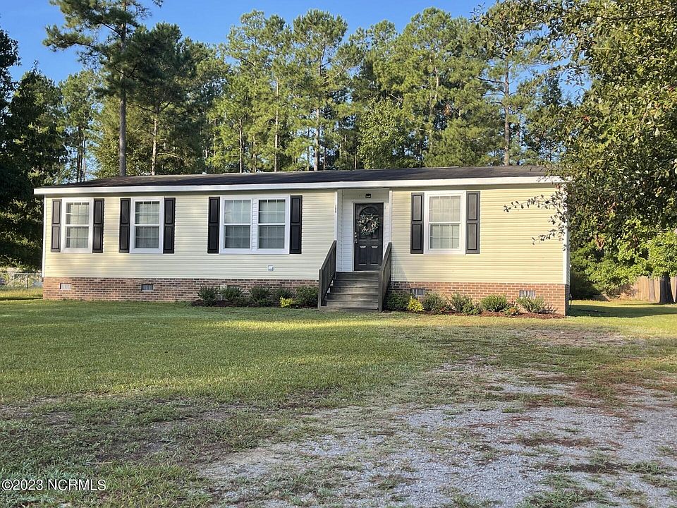Just renovated manufactured home on large .4-acre lot, just 7 minutes from Castle Hayne. Features brand new roof, carpet, rear deck, refrigerator with ice maker. Large kitchen with center island. Walk in closet in each bedroom. This home also includes a newer washer dryer, chain linked fence, and a large storage shed. No HOA!