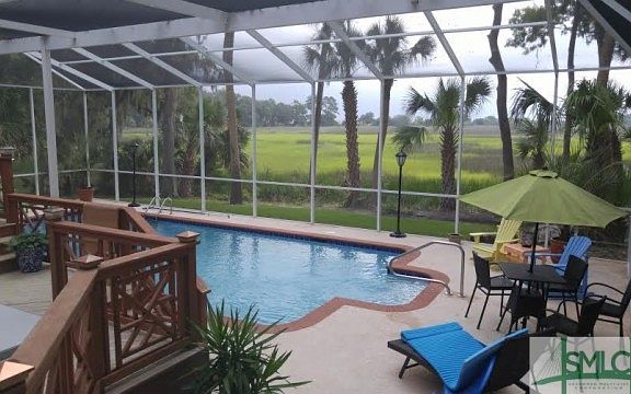 Custom-Built, One-Owner, Coastal Marshfront Home with approximately 4115 heated sq.ft. and approximately 18X36 Heated, Screened, Saltwater Pool. Features 4 bedrooms, 3.1 baths, living room with fireplace, dining room, den, large bonus, sunroom, gourmet kitchen with upgraded appliances, large dining area, and breakfast bar, hot tub on exterior deck overlooking pool. Approximately 1/4 mile from Public Marina, Public Boat Ramp. Upgraded trim package, plantation shutters.