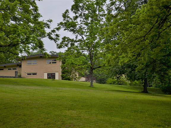 This spacious 3434 sq ft, 4bed/3 bath home on 3+ acres is reminiscent of the Frank Lloyd Wright homes. Recently updated! Tankless nat gas Rinnai water heater! Large Living Rm w/gas log fp. Charming Library w/wood burning fp, built-in book cases, desk & a wall of windows for natural light! Kitchen has plenty of cupboards & a 5 burner gas range! Walk-out basement has 4th br, 2 lg bonus rms, 1 w/a closet, and an unfinished wk shop.